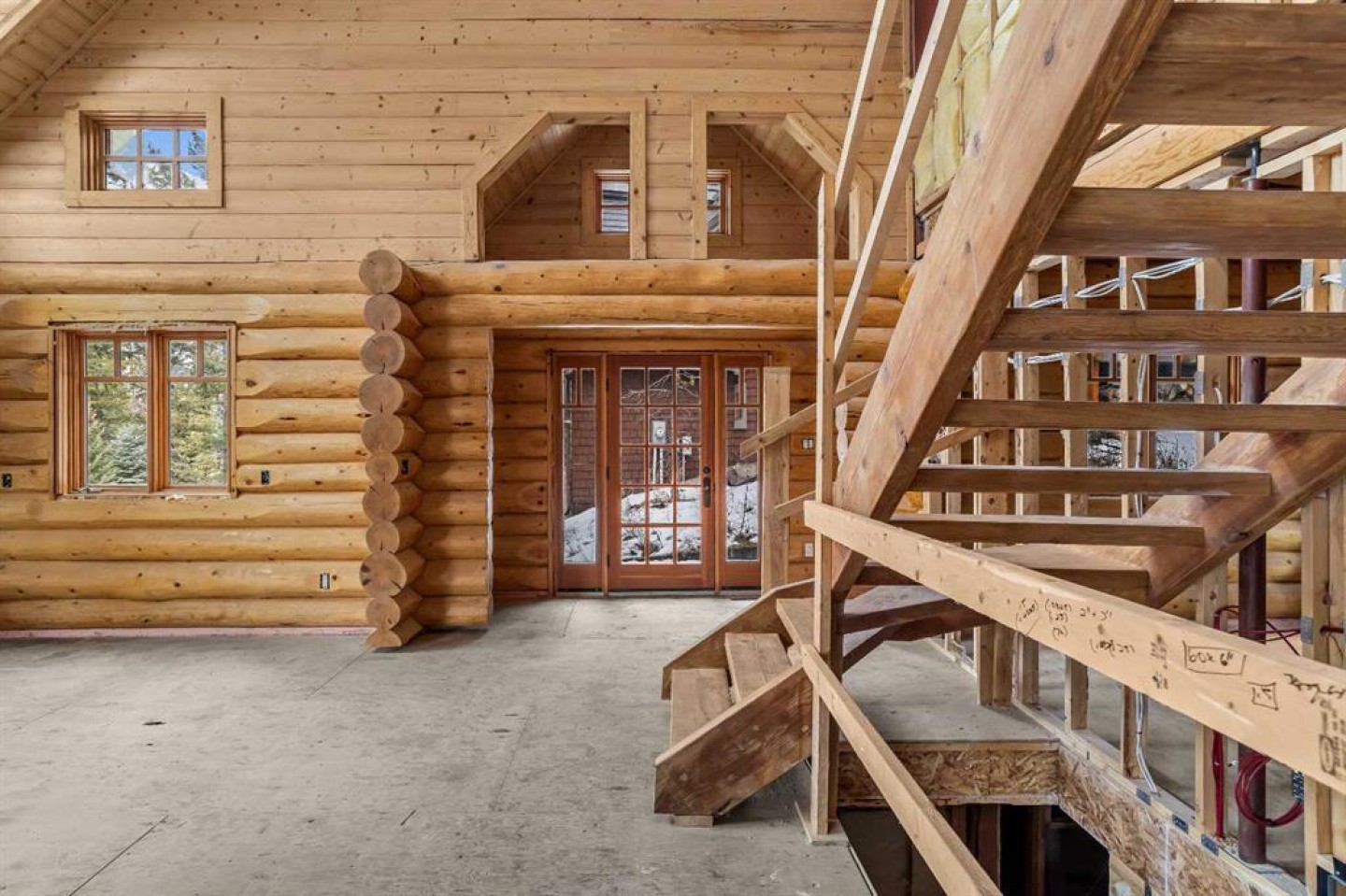 An exceptional opportunity in Silvertip—this classic log home offers over 2,500 sq ft of living space and presents a rare chance to bring your vision to life in one of Canmore’s most prestigious mountain communities. Currently mid-transformation, the property already benefits from significant system upgrades and quality improvements, setting the stage for the next owner to complete a truly remarkable custom retreat at an attractive price point for this coveted location. Defined by its timeless log construction and dramatic vaulted ceilings, the home offers a bright, open-concept layout filled with natural light. A grand living room anchors the main level, featuring a wood-burning fireplace and an impressive wall of windows that frame breathtaking mountain vistas. The adjoining dining area and kitchen flow seamlessly together, with direct access to both front and rear decks—perfect for enjoying sun-drenched mornings and serene alpine evenings. Please note that some fixtures have been removed, offering a blank canvas to customize finishes to your exact taste. Upstairs, the top level includes two bedrooms, a versatile loft space, and a full bathroom. A second wood-burning fireplace adds warmth and character, while access to an additional deck provides expansive, panoramic views and abundant sunshine—an ideal space to unwind or entertain. The lower level offers added functionality with a spacious family room, laundry area, and access to the single-car garage. With its unbeatable Silvertip location, striking architectural features, and immense potential, this property is an outstanding opportunity for buyers looking to create a bespoke mountain home tailored to their lifestyle.